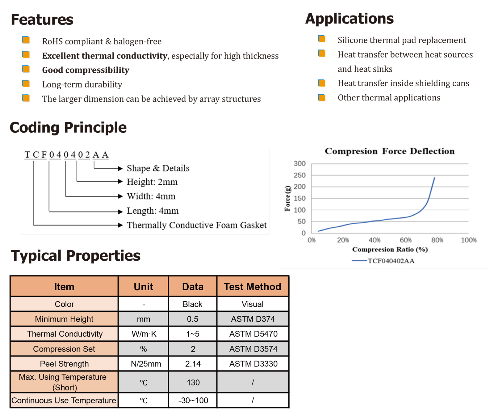 TM TCF系列導熱泡棉墊片是一種由聚氨酯和合成石墨四面包裹而成的導熱墊片。" />