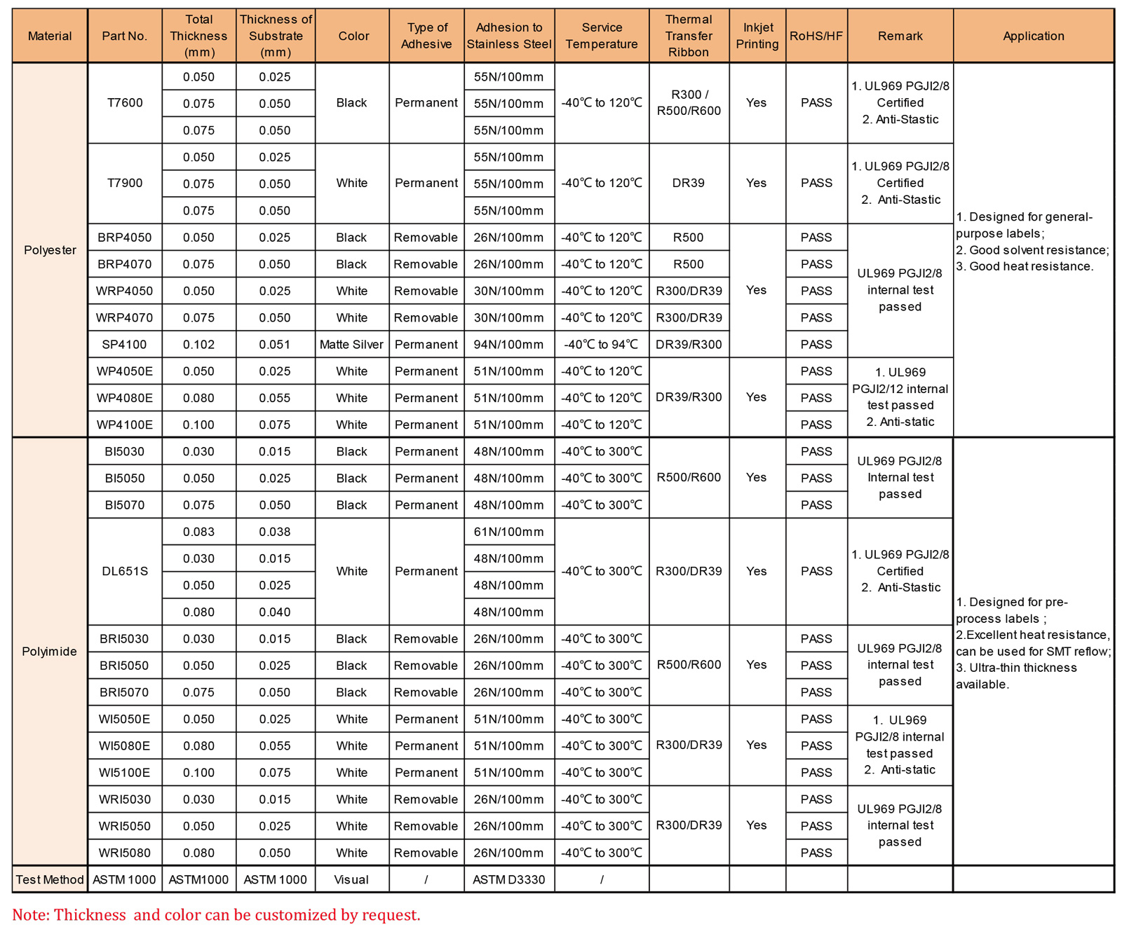 聚酯和聚酰亞胺標簽