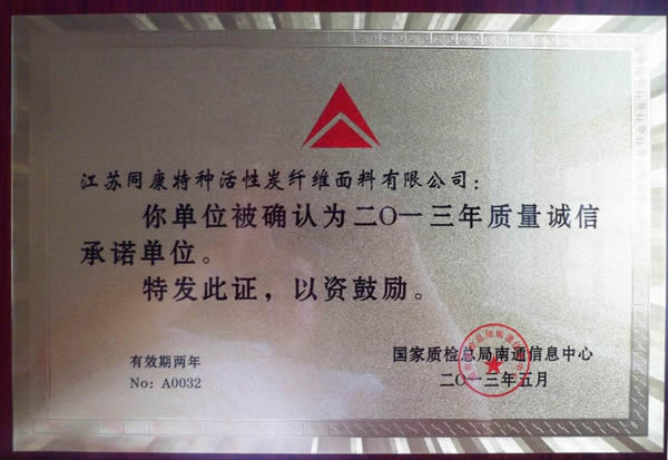我公司被國家質(zhì)檢總局南通信息中心確認(rèn)為二O一三年質(zhì)量誠信承諾單位。